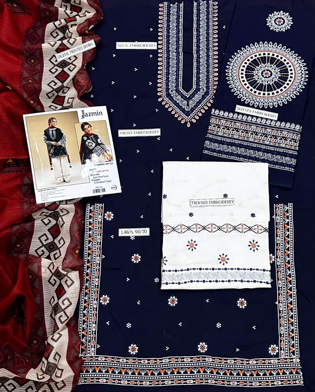 JAMZIN EMB LAWN 3PC UNSTICHED